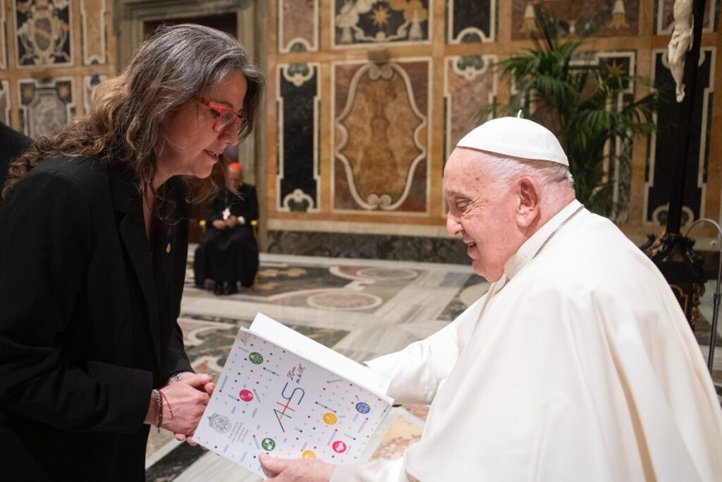 El 9 de noviembre, en tanto, se llevó a cabo la audiencia con el Papa Francisco en el Vaticano, oportunidad en que la directora del CDDoc le hizo entrega del libro que conmemora los 20 años de A+S en la UC. “Haber tenido la oportunidad de estar con el Papa y entregarle una parte del trabajo que hace nuestra Universidad para formar estudiantes comprometidos y conocedores de su realidad, fue muy importante. Es, en verdad, un hito muy relevante para nosotros, ya que podemos mostrar las caras de los y las docentes, estudiantes y socios comunitarios con quienes hemos trabajado este tiempo y de lo que la Universidad piensa respecto de cómo deberían ser nuestras salas de clases”, afirmó Jouannet.