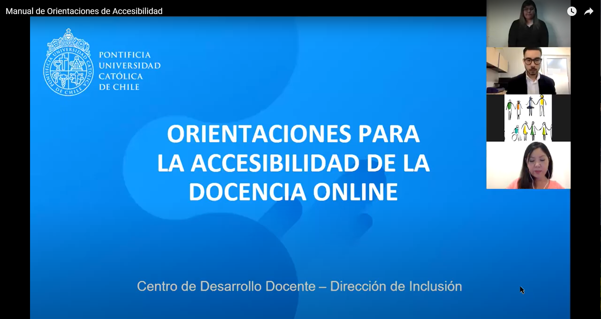 En esta sesión se realiza la presentación oficial del Manual de Orientaciones para la Accesibilidad de la Docencia Online elaborado en conjunto entre el Centro de Desarrollo Docente y la Dirección de Inclusión - PIANE.